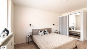 Spálňa je moderne a funkčne zariadená. Miesto Vám ušetrí aj skriňa s množstvom odkladacieho priestoru.