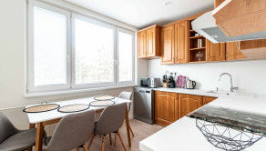Dispozícia bytu je veľmi funkčná a poskytuje dostatok súkromia pre nájomcov bytu, pričom zároveň ponúka zóny pre spoločné trávenie času. Nehnuteľnosť prešla kvalitnou rekonštrukciou a moderným zariadením poskytuje dostatočný komfort pre svojich budúcich nájomcov.