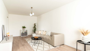 Obývacia miestnosť má dostatok priestoru na odpočinok a vďaka jej veľkosti je možné vytvoriť aj útulný pracovný kútik. Celkový dojem z miestnosti je vzdušný a funkčný, čo umožňuje harmonické prepojenie medzi relaxáciou a produktivitou.