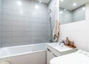 Kúpeľňa je v svetlých tónoch a oceníte najmä to, že disponuje vaňou. Samostatná toaleta a kúpeľna zvyšújú komfort pre budúcich nájomcov.