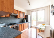 Dispozícia bytu je veľmi funkčná a poskytuje dostatok súkromia pre nájomcov bytu, pričom zároveň ponúka zóny pre spoločné trávenie času. Nehnuteľnosť prešla staršou ale kvalitnou rekonštrukciou a moderným zariadením poskytuje dostatočný komfort pre svojich budúcich nájomcov.