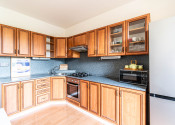 Kuchyňa je príjemne presvetlená a priestranná. Kuchynská linka Vám ponúkne všetko, čo potrebujete, vrátane spotrebičov a príslušenstva.