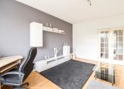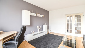 Obývacia miestnosť má dostatok priestoru na odpočinok a vďaka jej veľkosti je vytvorený aj pracovný kút. Celkový dojem z miestnosti je vzdušný a funkčný, čo umožňuje harmonické prepojenie medzi relaxáciou a produktivitou.