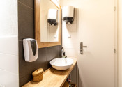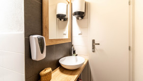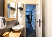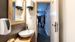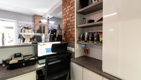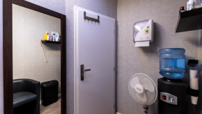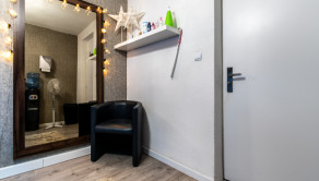 Interiér bol v roku 2018 kompletne zrekonštruovaný a momentálne je dispozične rozdelený na recepciu so vstupnou chodbou, štyri samostatné miestnosti a socilane zariadenie. Väčšina priečok je riešených zo sadrokartónu, čo umožňuje jednoduchú úpravu dispozície podľa potrieb nového majiteľa. Priestor je preto vhodný nielen pre služby, ako kozmetika, masáže či zdravotné a relaxačné štúdio, ale aj ako kancelárske zázemie alebo menšia obchodná prevádzka.