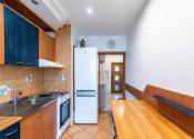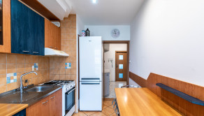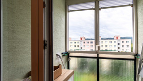 Kuchynská linka je zachovalá, pričom kuchyňa je dostatočne priestranná aj na jedálenský stôl. Východ na loggiu.