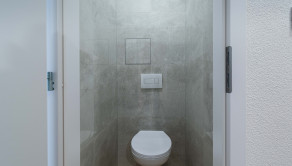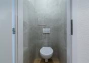 Wc je riešené podomietkovým systémom. Kúpeľňa a WC sú oddelené.
