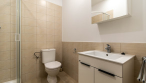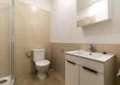 V kúpeľni sú použité kvalitné obklady, kvalitný sprchový kút je samozrejmosťou. Takisto je tu pripravené miesto na práčku.