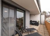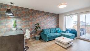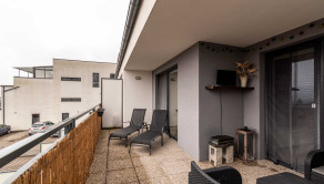 Súčasťou bytu je terasa s výmerou 20m2, ktorá prirodzene rozširuje obytný priestor a je prechodná z obývacej izby aj spálne.