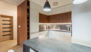 Väčšina zariadenia nehnuteľnosti je vyrábaná na mieru a byt sa predáva takmer kompletne zariadený.