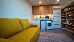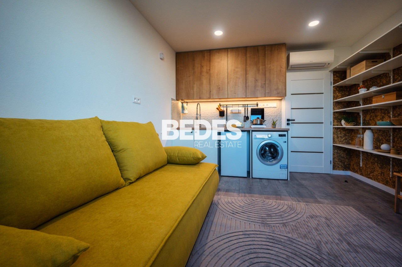 Garsónka je kompletne zariadená - vrátane nábytku a elektrických spotrebičov (indukčná varná doska, chladnička s mrazničkou, automatická práčka). V miestnosti je aj dostatok úložného a odkladacieho priestoru. Veľkou výhodou je klimatizačná jednotka.